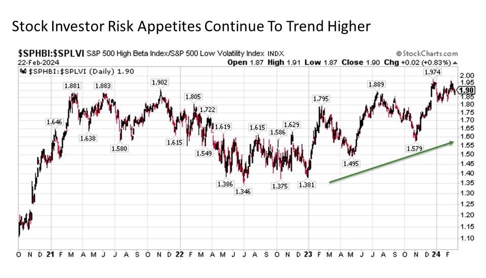 Bottom line. Often during stock market history, we have had phases where stocks are performing well at a time when underlying stresses are accumulating under the surface. And in many instances, these foreshadowing stresses eventually bubble up to derail the major stock market indices. The good news is that many of these key stress indicators, including those highlighted above are signaling that risk tolerance is if anything continuing to build in the marketplace today. This bodes well for capital market assets as we continue to make our way through 2024.