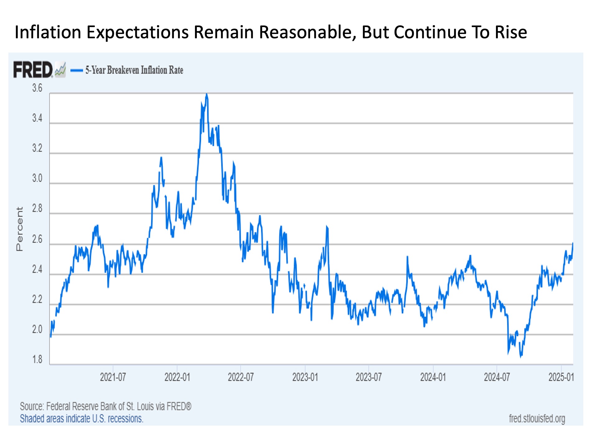 It is here where we are starting to see some potential cause for concern. After bottoming below 2.0% during the third quarter of last year, the 5-year breakeven inflation rate has since spiked higher to just above 2.6% in recent days, which is the highest reading since early 2023 when inflationary pressures were still coming down from 2022 peaks. While 2.6% average expected inflation is still a highly manageable number, if this reading starts spiking to levels north of 3%, then the concerns around potentially rising inflation are likely to start seeping into financial markets in a measurable way in the form of higher Treasury yields and lower stock prices.