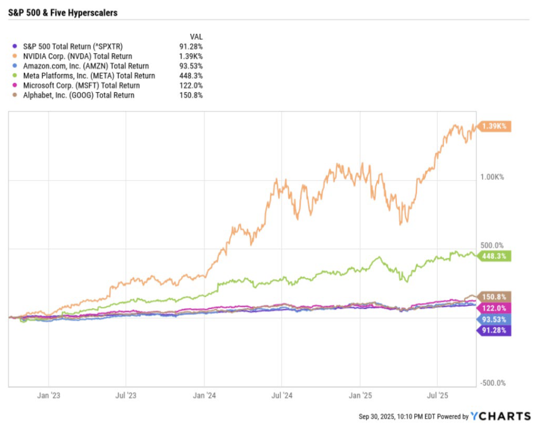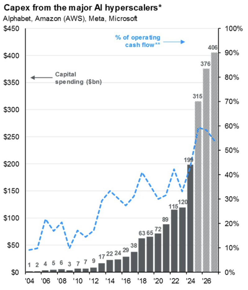 Artificial Intelligence has moved from buzzword to backbone. It dominates headlines, moves markets, and is reshaping the future of technology and the economy. For most people, AI is already part of daily life, and its influence will only deepen. For equity markets the question is not whether AI matters but where the next wave of opportunity lies. The dominant players such as Meta, Microsoft, Alphabet, and Amazon remain at the center of the trade, powering the buildout of large language models, machine learning, and the broader “intelligence revolution”. These firms are projected to invest more than $300 billion in AI related capital expenditures over the next year, with that figure on pace to approach $1 trillion annually by 2030.